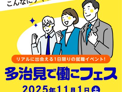 NEWS 就職合同説明会「多治見で働こフェス」に出展! 11月1日(土)開催 就職合同説明会「多治見で働こフェス」 当社も出展します! 就職合同説明会「多治見で働こフェス」は、多治見市公認優良企業と出会えるイベントです。多治見市内に事務所・店舗を構える23社が出展します。 […]