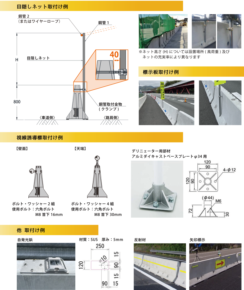 ネットフェンス等を取付ける為の支柱を容易に立てることができます。 - 視線誘導標等取付部