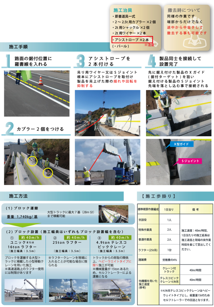 NEXCO中日本、ケイコン株式会社との三社共同研究により、これまでにない施工速度と高い安全性を併せ持つ製品になりました。